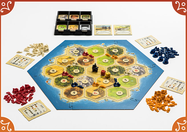 카탄(Catan)은 독일식 현대 보드게임의 제왕이라 불리는 명작 게임입니다. 다양한 자원을 이용해 도로를 확장하고 마을과 도시를 건설하여 가장 먼저 10점을 획득하는 플레이어가 승리합니다. 카탄은 만 10세 이상부터 플레이할 수 있으며, 3~4명이 함께 즐길 수 있어 가족이나 친구들과도 함께하기에 좋습니다.